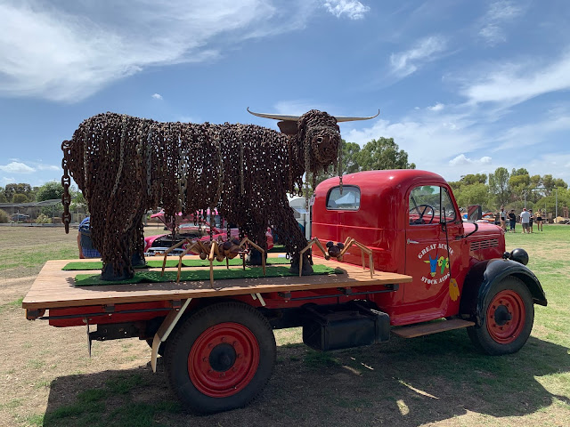 We went to have a look at Bridgetown, a small town east of Nannup . It sure has a great selection of shops and coffee shops. I also found a Christmas shop which was so full of very different Christmas decorations etc. I was good as John keeps telling me remember its weight . I was good to not buy anything but there were a couple of Banksia ornament I was tempted to add to my Christmas stash. I may still get them later on .